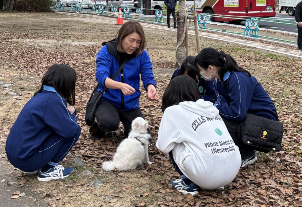 私たち高校1年A組は、キリスト教強調週間の学年別活動で、動物愛護NPO法人SPICA代表の山下育美さんのお話を聞きました。