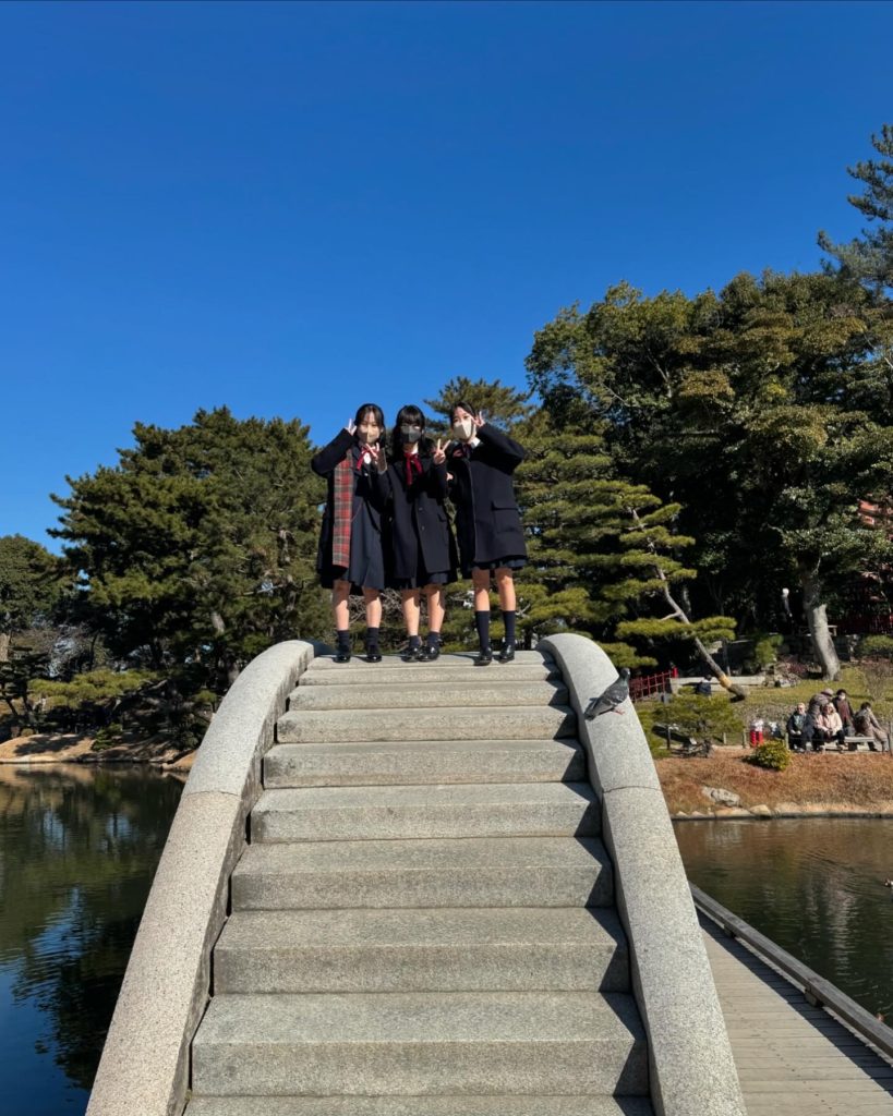 今日のLHR・総合学習の時間、中学2年生は女学院のすぐそばにある縮景園と県立美術館へおさんぽに出かけました。