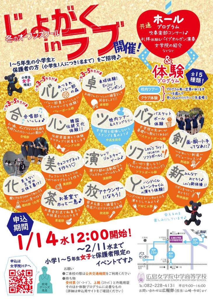 冬のオープンスクール ~じょがく in LOVE~ のご案内です!