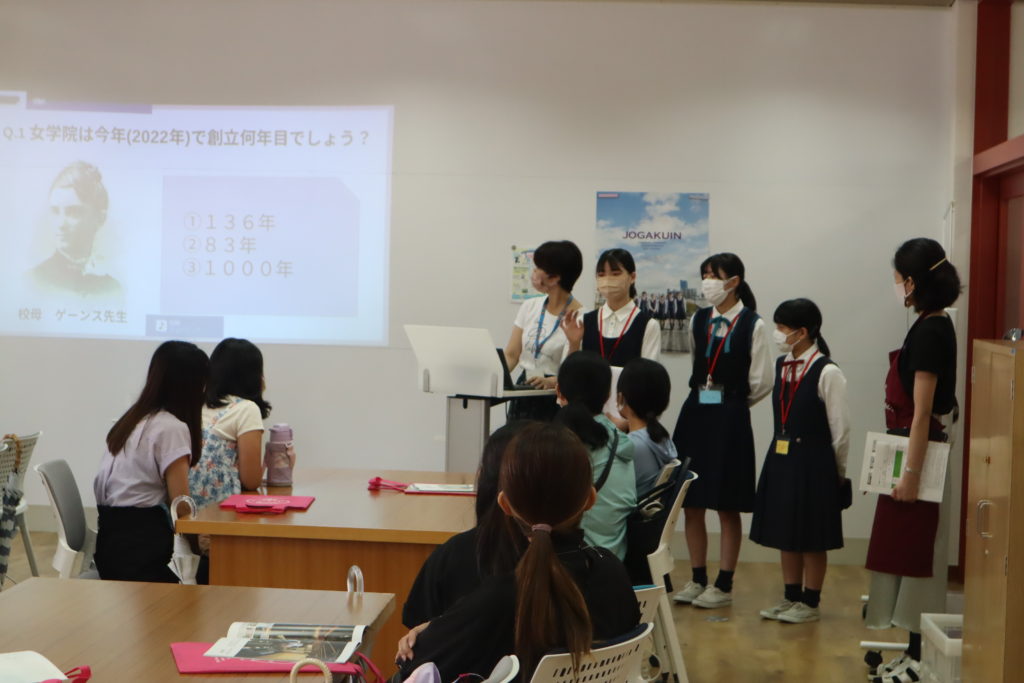 女学院アンバサダーたちは、クイズや校内ツアーの練習・資料の封入など、この日のためにたくさん準備をしてきました。小学生の皆さんに楽しんでいただけたようで、女学院生たちもとてもうれしかったようです。