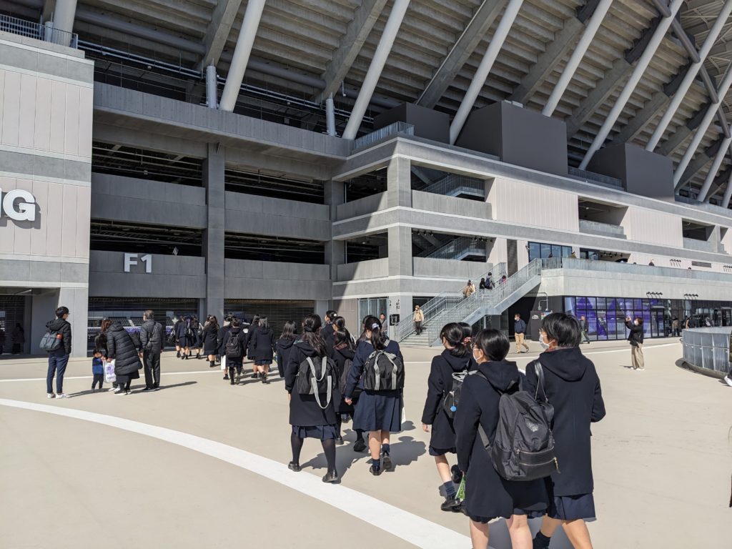 園内はとてもきれいで,たくさんの人がいました。卒業生に案内をしてもらいました。