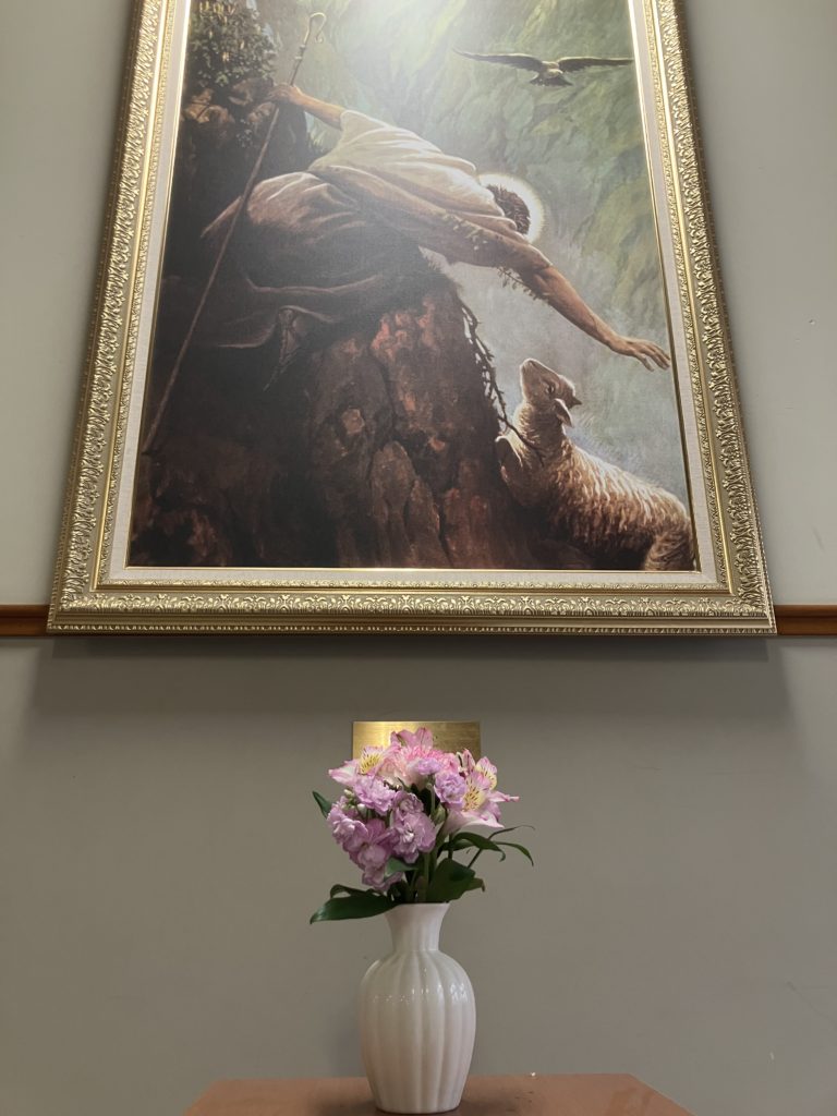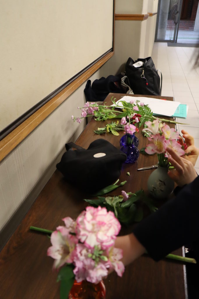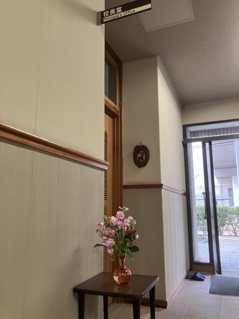 女学院の校内にはたくさん花が飾ってありますが、中学校舎は中学美化委員が飾っています。