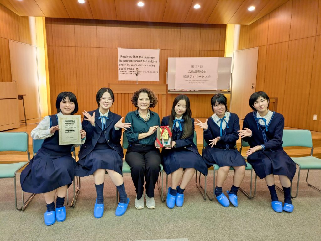 On October 26, some members of the GI Debate Team participated in the 17th Hiroshima Prefectural High School English Debate Tournament, held at Hiroshima Municipal Funairi High School. The Hiroshima Jogakuin team achieved third place, and one of our members received the Best Debater Award.