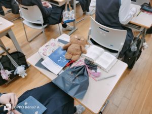 広島女学院では中1の時に、一人に一つずつの聖書袋(聖書と讃美歌を入れておくもの)が渡されます。