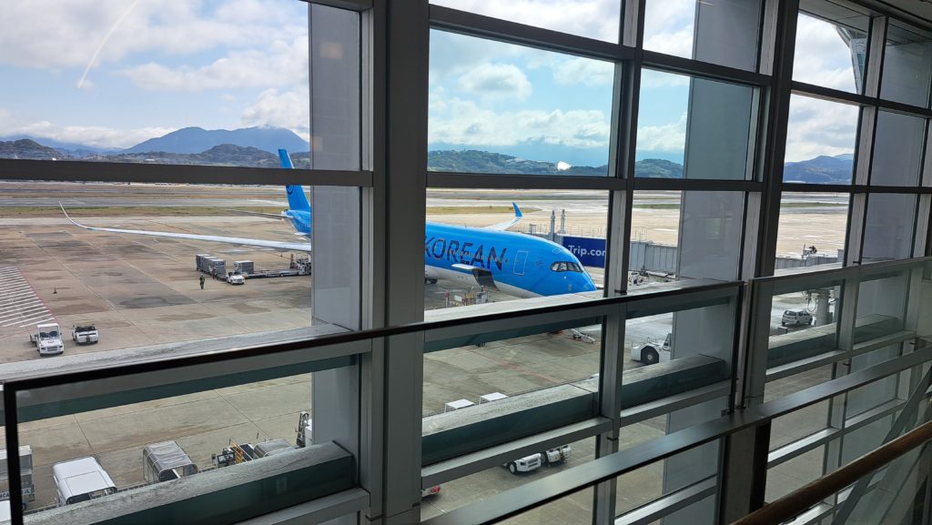 新幹線で福岡に向かい、福岡空港から韓国の仁川国際空港に向かいます。