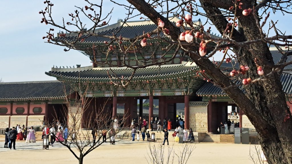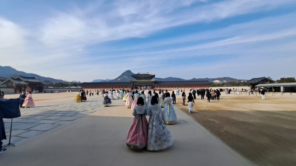 入国手続きを行った後、向かったのは京福宮。ソウル中心部に位置する朝鮮王朝時代の王宮にてチマチョゴリ体験。