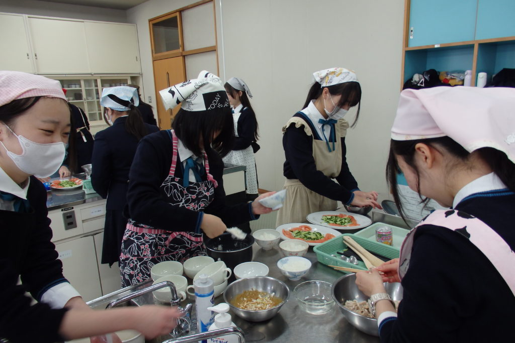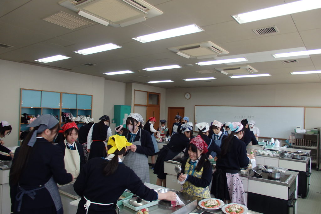 校舎のどこからか・・とってもい香りがしています。その香りをたどっていくと料理実習中でした。みんな忙しそうに動き回っています。