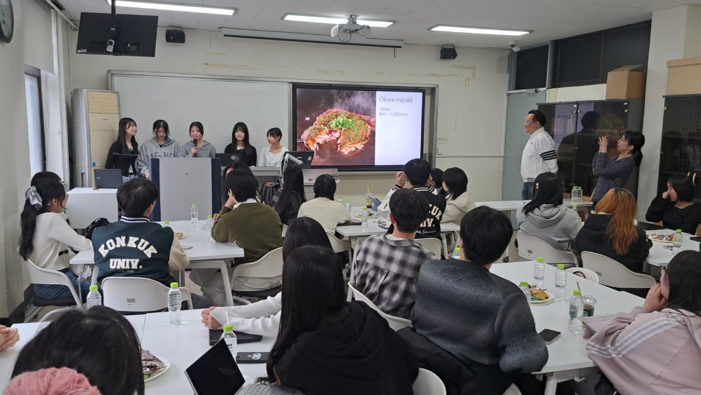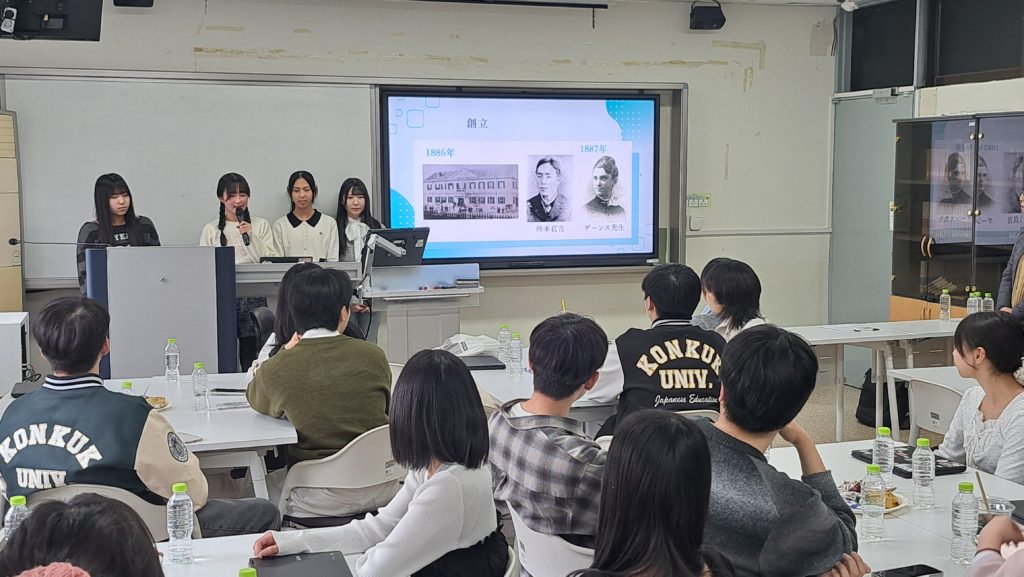 そして、いよいよ、この研修「初」の交流会会場、建国大学へ。約半年にわたって準備を進めてきたプレゼンテーションの発表です。
