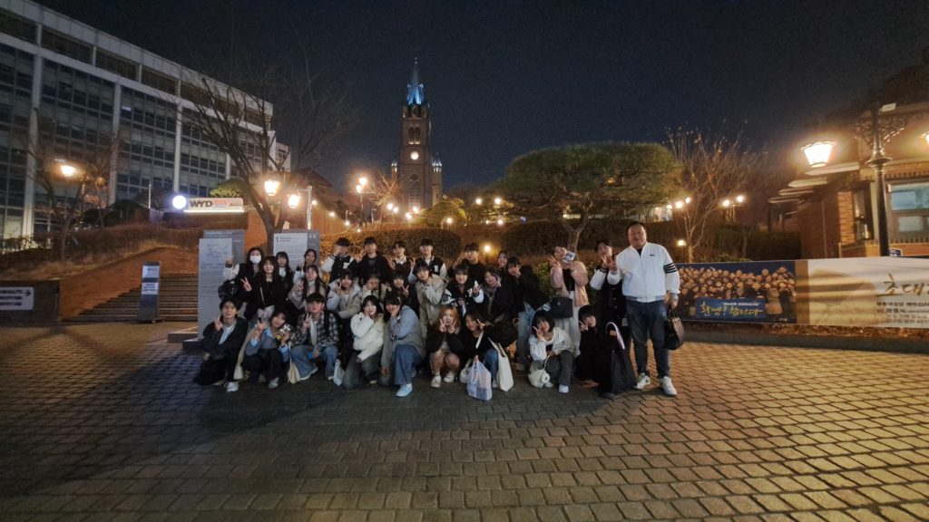 ④ 建国大学 日本語教育課の学生との交流会 ⑤ 建国大学の学生と明洞散策・夕食