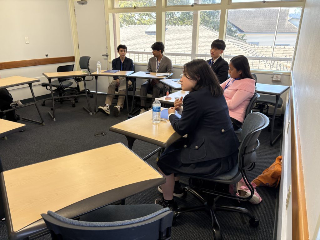 昨日の発表を受けて、今日の午前中は小グループに分かれて意見交換です 英語で活発に討議されていました。 2人とも頑張っていました。