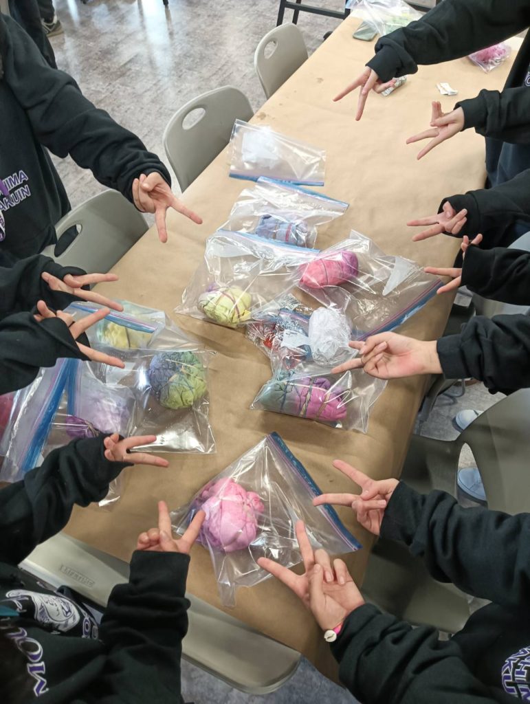 Today was the sixth day of our Mount Union program. The weather was snowy today. It’s so cold. We joined classes at the university today. We taught origami and Japanese to university students. I couldn’t explain it as well as I wanted, but it was fun. We tie-dyed t-shirts. I dyed my shirt in various colors and made my own design.