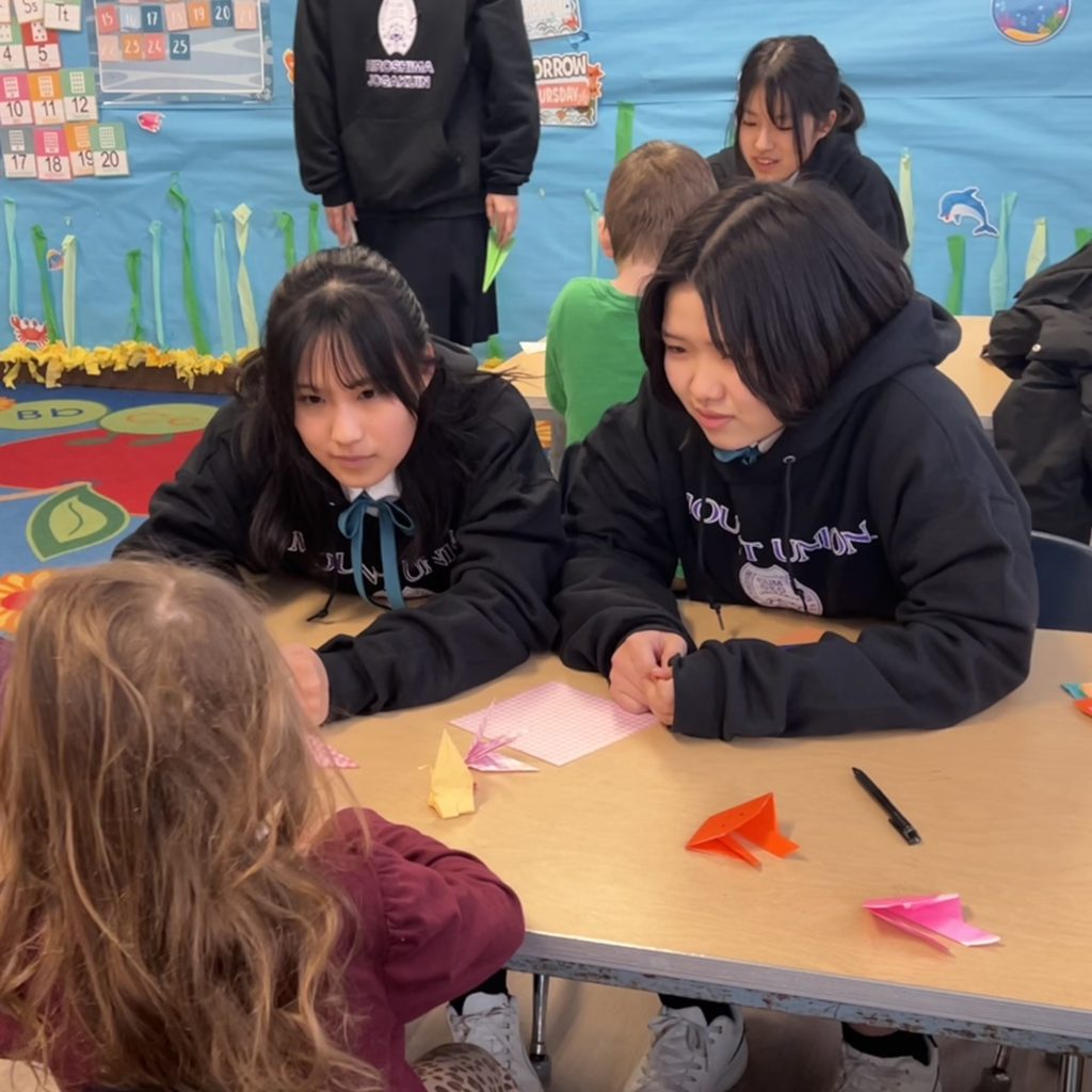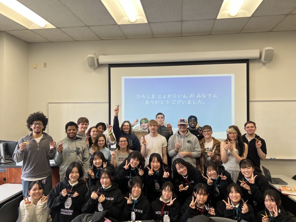 Third, we joined a Japanese class. I answered Japanese questions which college students asked about Japan, my family, and this study tour. Then we folded paper cranes in Japanese with them. I had only explained how to fold in English so far, so it was a fresh experience.