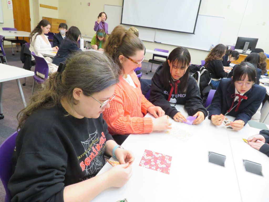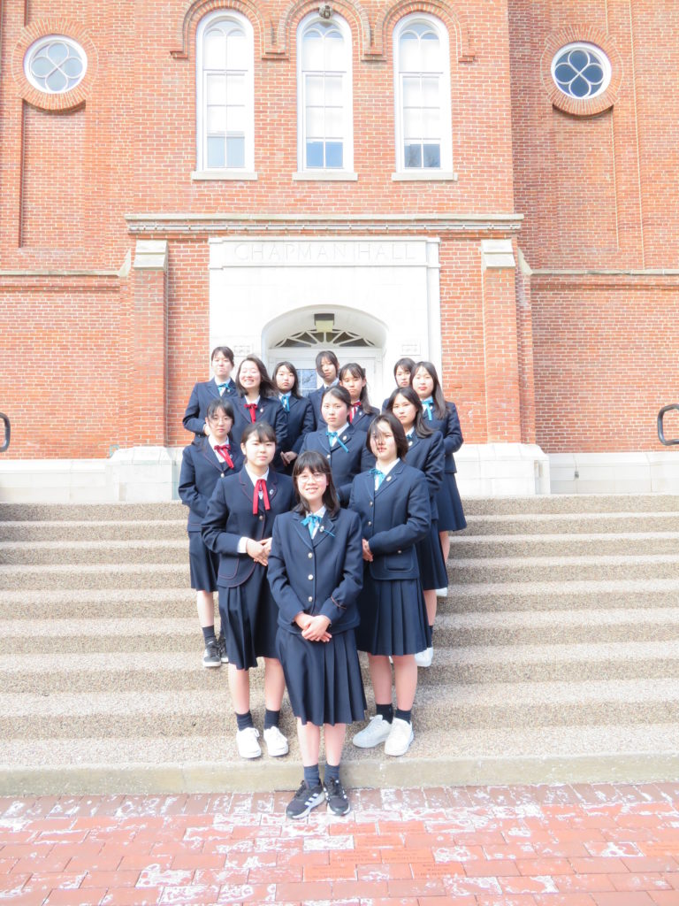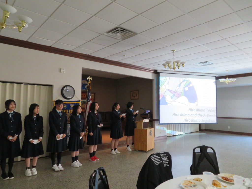 We also did a presentation about the atomic bomb, Hiroshima, and Jogakuin to local people. We gave the presentation to the Kiwanis Club and at Mount Union. Everyone listened carefully and asked us many questions. We were nervous, but we practiced a lot, so we could finish it without mistakes. I was surprised that people in America ask questions more actively than in Japan.
