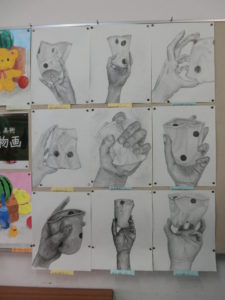 いつも何気なく使っている「手」をまじまじと観察して、鉛筆で描きます