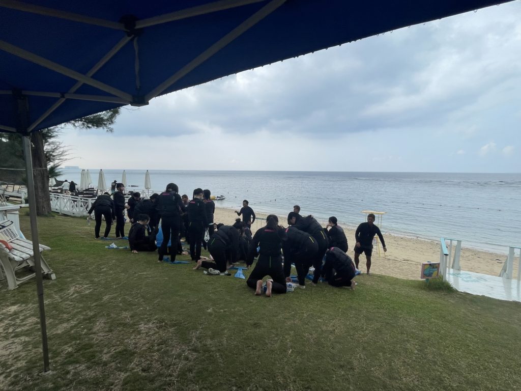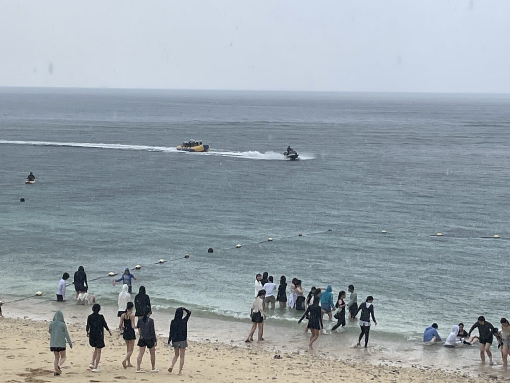 マリンスポーツ組は、午前中の晴天はどこへ!?たいう生憎の空模様でしたが、それでも沖縄の海を満喫しました。