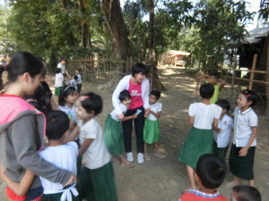 Today was amazing. Each of us has the power to make a new tomorrow. One man with a dream to build schools for impoverished children in Myanmar’s rural areas, Furusho-San, with his NGO, Pagoda Japan, has devoted himself to making that dream come true. Our students had the privilege of sharing that dream of kindness today. We visited two schools, hours away from Yangon, bringing school supplies, musical instruments, toys, and clothing to over 450 children. We sang, made origami together, and played together. (すばらしい一日でした。私たちひとりひとりには「明日を創造する力」があります。「パゴダの会」を主宰する古庄重生さんはミャンマーの地方の村に住む貧しい子どもたちのために長年、学校をいくつも建設し続けています。それが古庄さんの夢であり、余生を捧げておられます。私たちは今日、その夢を共有させてもらう機会に恵まれました。ヤンゴンから数時間移動し、古庄さんが建設された学校のうち、二校を訪問しました。日本から持ってきた学校用品、楽器、オモチャ、衣類などを450人以上の子どもたちに手渡ししました。そして一緒に歌を歌い、折り紙を折り、外で遊びました。